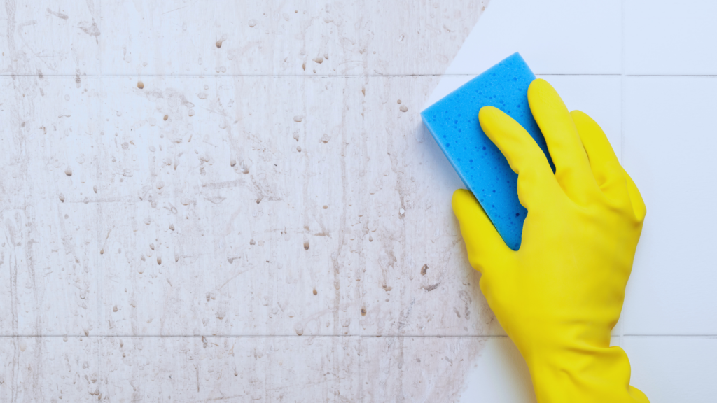 Det kan være en fordel at anvende en blød svamp eller klud under processen frem for en grov børste. Groft materiale kan ridse fliser og armaturer, hvilket både forringer udseendet og giver kalken nye steder at sætte sig.